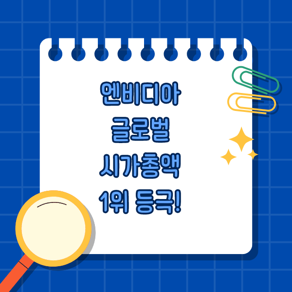 엔비디아가 처음으로 글로벌 시가총액 1위 자리에 올랐습니다.