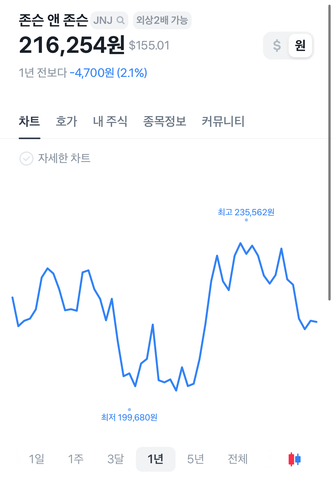 1. 존슨앤드존슨의 주식 현황