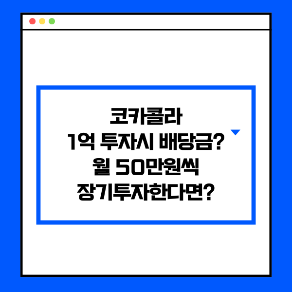 코카콜라(Coca-Cola)는 안정적인 배당주로, 투자자들에게 꾸준한 수익을 제공합니다. 오늘은 코카콜라에 1억 투자시 배당금은 얼마를 받을 수 있는지, 월 50만원씩 장기투자한다면 얼마만큼의 배당금을 받을 수 있는지 알아보도록 하겠습니다.