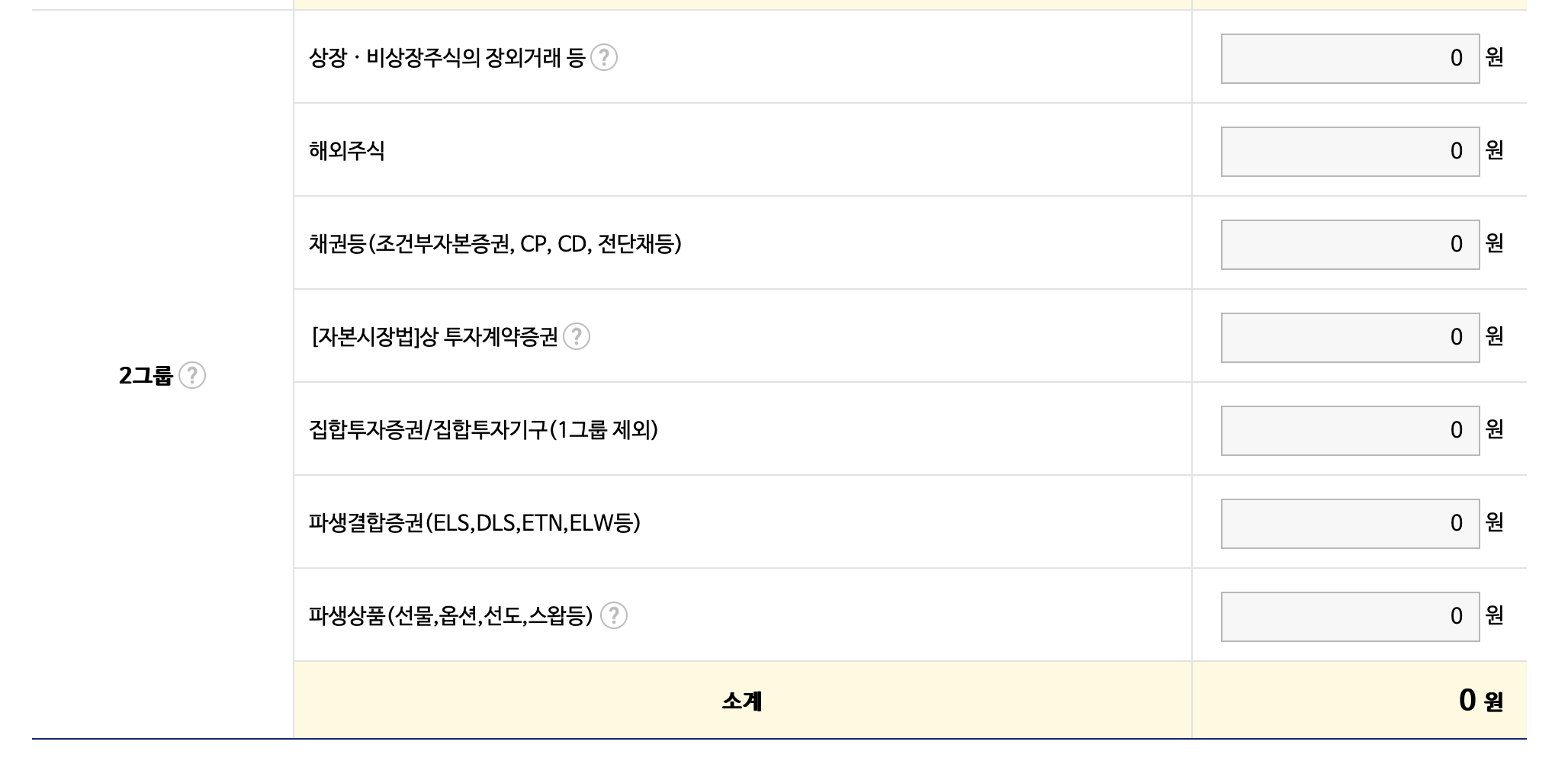 • 해당 투자 상품이 없으면 0원으로 두시면 됩니다.
