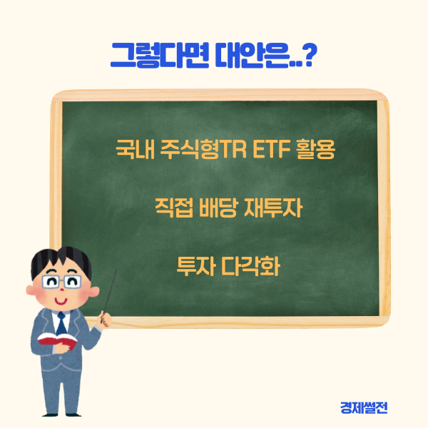 • 국내 주식형 TR ETF 활용: 장기적인 복리 효과와 절세를 노릴 수 있는 유일한 옵션으로 고려.