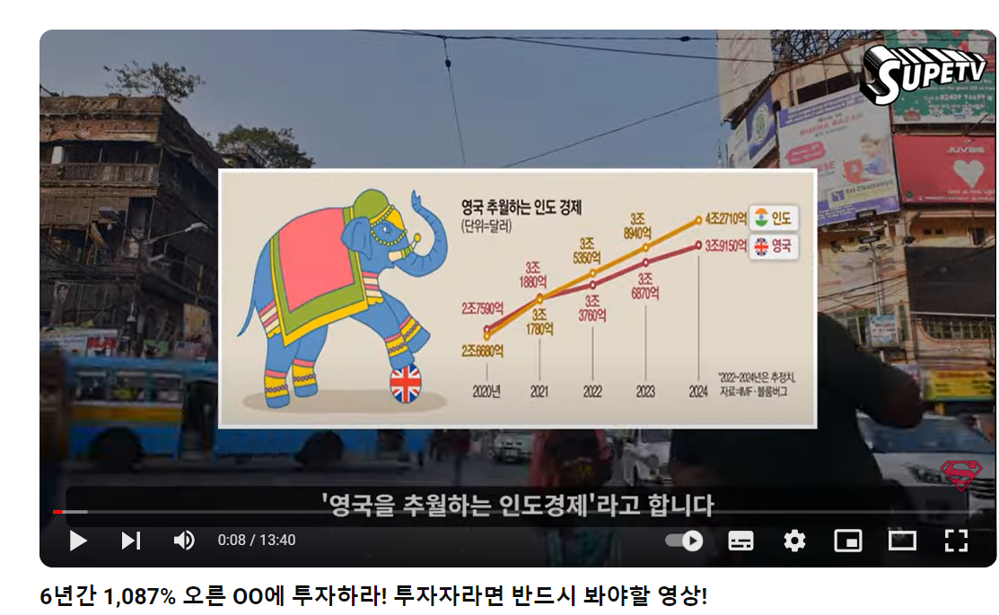 바로 인도입니다. 14억 인구를 자랑하는 인도는 이제 전 세계에서 가장 많은 인구를 보유한 국가입니다. 중국과 근소한 차이를 보이지만, 인구수로는 인도가 앞서고 있습니다. 제가 즐겨보는 수페 TV에서도 인도 시장에 대해서 중요하게 이야기 하는데요.